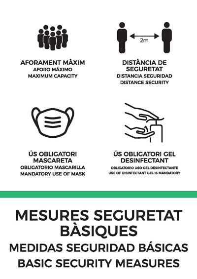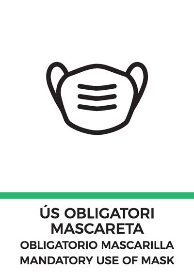 Asimismo, ofrecemos vinilos para avisar sobre la obligatoriedad de la mascarilla o para advertir que es necesario desinfectarse las manos, y diferentes tótems para volver a recordar la necesidad de seguir las normas.